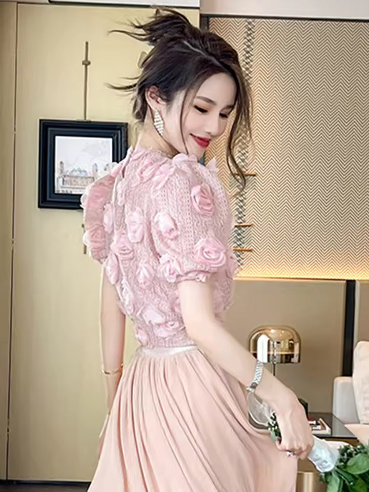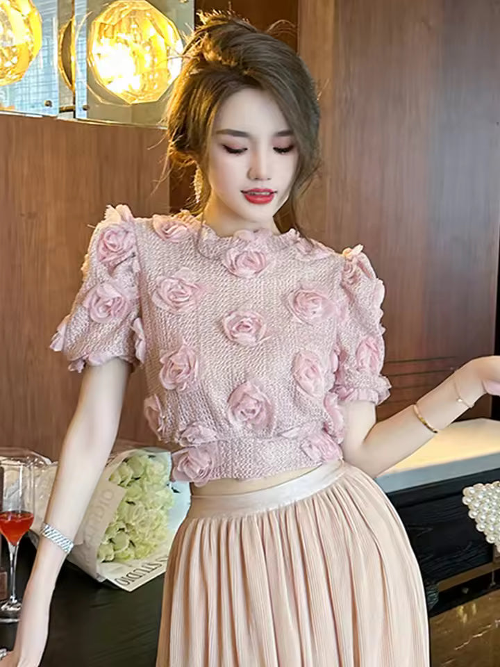 Le pull court rose en maille pour femme apporte une touche douce et romantique à votre garde-robe d’été. Son style féérique et floral crée une allure légère et tendance.