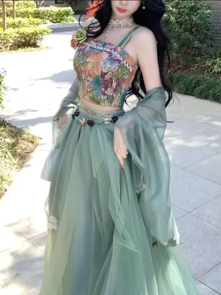 Ensemble Hanfu Moderne Deux Pièces Fleurie