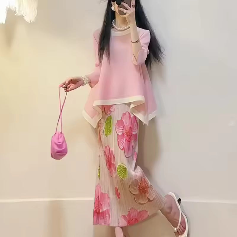 Eleganza Haut de Gamme et Raffinée Il magnifico ensemble deux pièces jupe rose incarna uno...