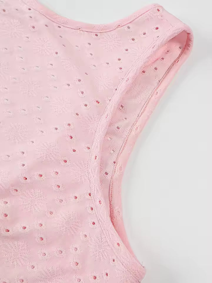 Cette robe mini sans manches séduit par sa broderie floreale raffinée et son design féminin. I dettagli in rilievo apportano un tocco sofisticato e romantico al tuo look.