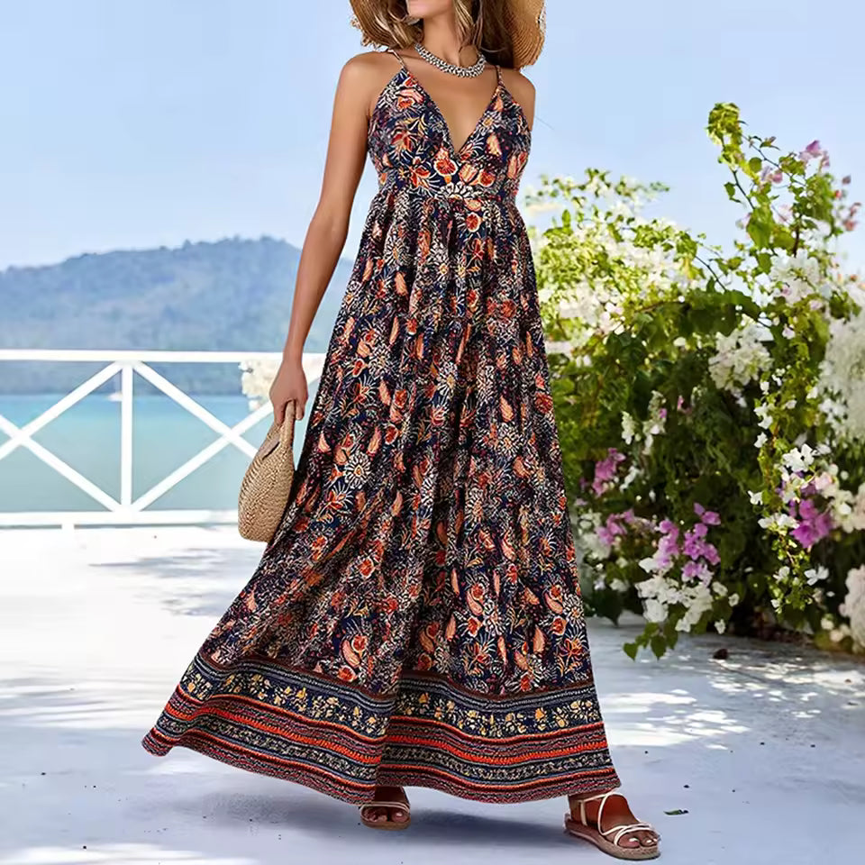The Summer Vacation Floral Maxi Cami Dress is designed for relaxed elegance during warm, sunny days. With its flowing silhouette and feminine details, this dress is perfect for holidays, beach walks, and casual summer outings.