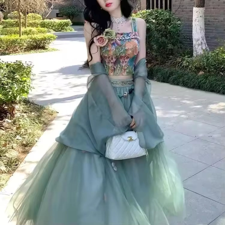 Parfait pour les sorties estivales, les événements décontractés ou les séances photo stylées, cet ensemble Hanfu moderne est à la fois élégant, tendance et polyvalent.