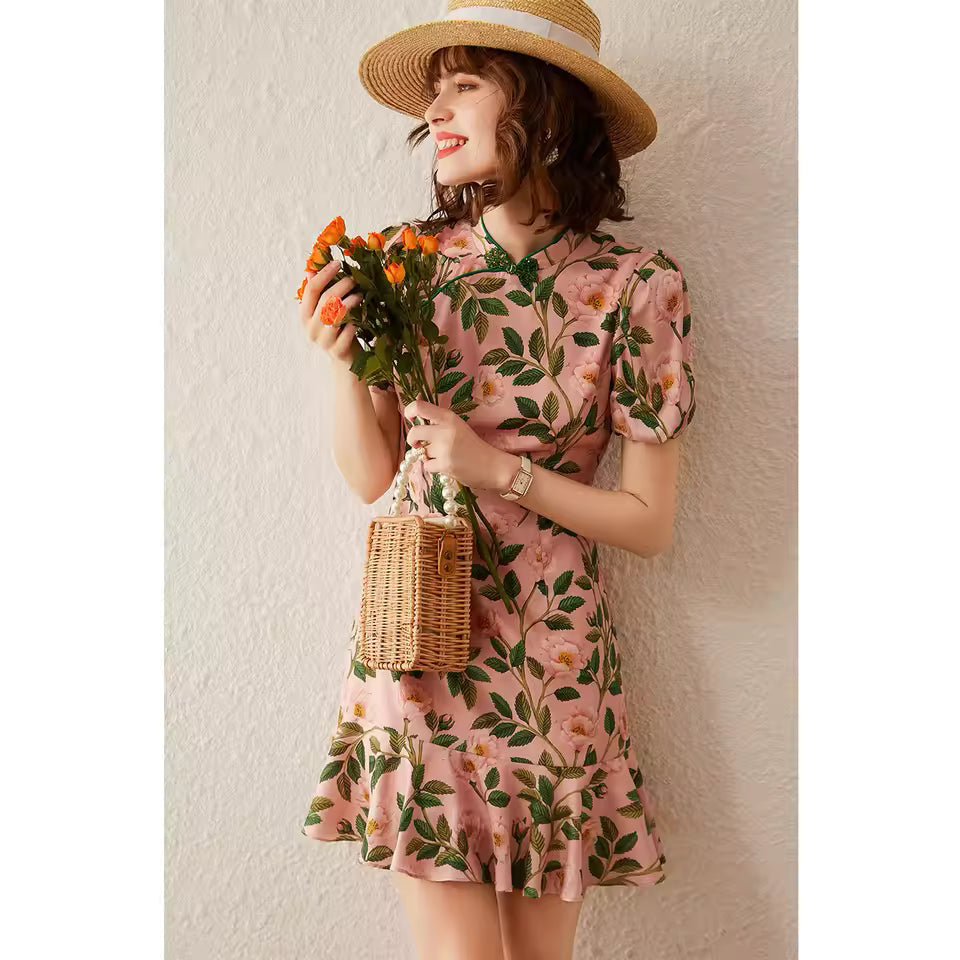 The Elegant Floral Women’s Long Dress is a refined blend of modern chic and classic Cheongsam-inspired design. Created for the 2025 summer season, this dress delivers effortless elegance with a fashionable streetwear edge.